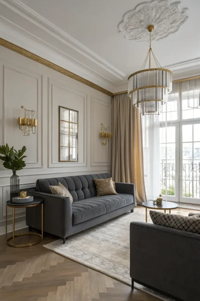 For a look that’s clean and classic, pair soft greys with crisp whites. Start with a light grey couch or wall color, then introduce white accent chairs or a marble coffee table to create contrast. This palette works beautifully in minimalist living rooms, giving you a serene, airy backdrop to add pops of greenery or metallic décor. Consider panel molding or textured paint finishes for subtle architectural interest.